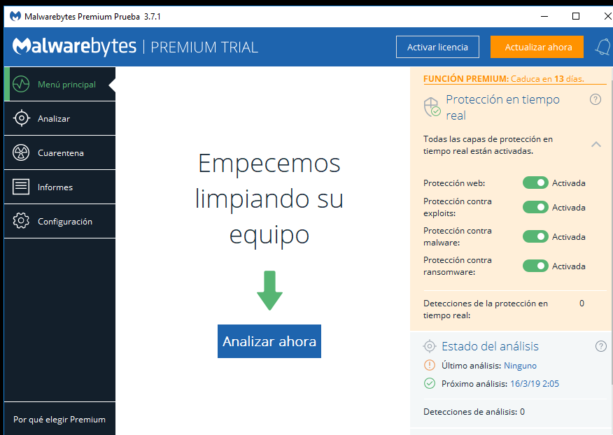 1-Descarga Malwarebytes. Podemos descargar la versión gratuita como la versión premium de prueba, cualquiera de las dos nos servirá.