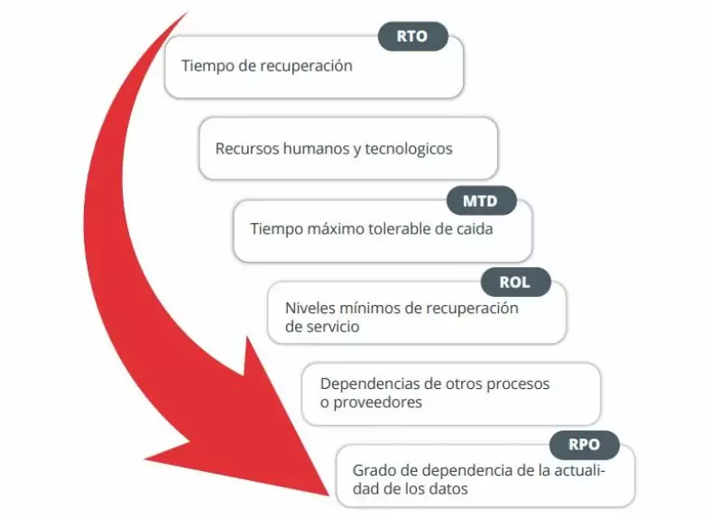 En esta fase comienzan las reuniones con el objetivo de fijar algunas claves como las dependencias de los proveedores, las aplicaciones y softwares usados y los datos que se necesitan para ejercer cada tarea. Después estableceremos el impacto sobre el negocio (BIA) que esto tiene. Este documento contendrá los requisitos temporales y de recursos de los procesos dentro del alcance y, junto con el Análisis de Riegos define las iniciativas a implantar para recuperar los procesos en situación de contingencia. Para cada proceso analizado, han de obtenerse los siguientes datos: