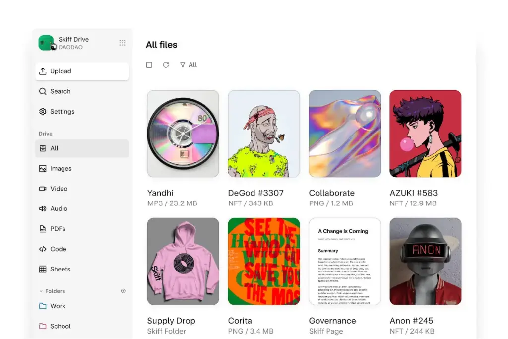 Al igual que muchos proveedores de correo electrónico en estos días, Skiff también viene con una suite Drive. El diferenciador de Skiff es que almacena archivos en IPFS. Actualmente consiste en una herramienta para compartir documentos llamada Pages. Esto también está disponible con la propia aplicación o servicio fuera de las aplicaciones y el servicio de correo electrónico de Skiff.